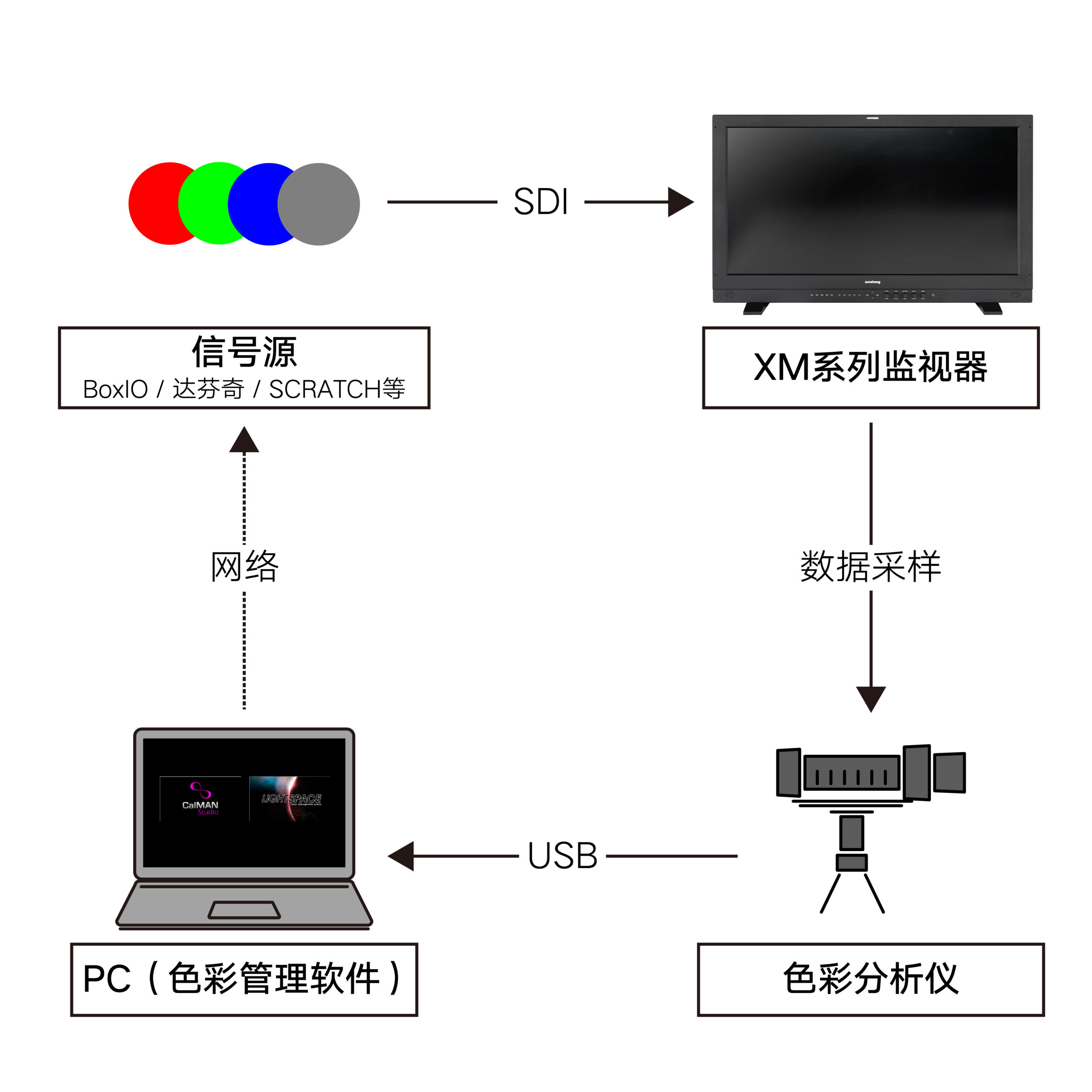 | 校正的具体流程是什么? 校正之前需要先进行测量,依据测量结果来判断监视器目前的状态,然后对监视器校正,并在校正完毕后再测量一次。对比校正前后测量的结果。 在进行监视器色彩校正/测量时,需要考虑的因素包括监视器是否支持第三方校正LUT或自动校正(LUT直接存到机内),以及色彩分析仪是否与屏幕级别对应,且需要提前准备校正矩阵(offset)。考虑到返厂校正花费的时间可能与计划有冲突。尊正监视器自主进行校正的解决方案。此方案性价比高,方便携带,只需要一个暗室甚至是一块黑布即可进行。(PS:在开始校正或测量前,需要先用光谱仪给色彩分析仪做校正矩阵(offset)) |